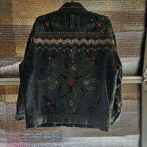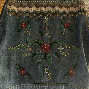 Code Blue vintage Jean Jacket Beaded Floral. Women’s size M