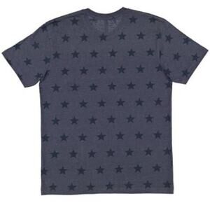 Men's medium five star tee in denim blue from LAT. Crew neck and short sleeves. Fit: Adult Unisex - True to Size. Stock photo shown for fit. Machine wash, tumble dry low. Due to light & screen variations, colors may vary slightly from the images