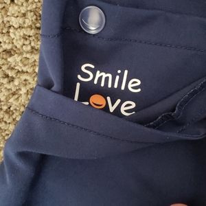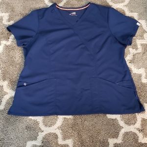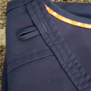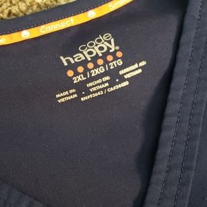 Code Happy Scrub Top. Navy blue in color, 2 front pocket, v neck. Please be mindful of brand and fit, zoom into pictures to see any imperfections.