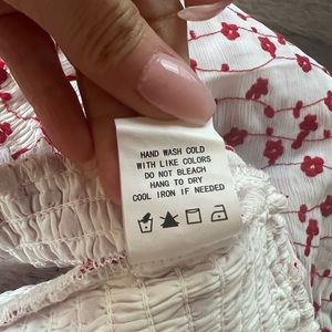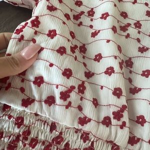 So cute 🌸 only worn once. Bought from Nordstrom during pandemic. Embroidered floral top from Code x Mode. Thicker material and well made. The floral pattern is embroidered! Perfect for the colder months on date night ❤️ Functional buttons and smocking on sleeves and bottom of top. The neckline is very flattering! Top is slightly cropped perfect for those high waisted denim 🫶🏼
