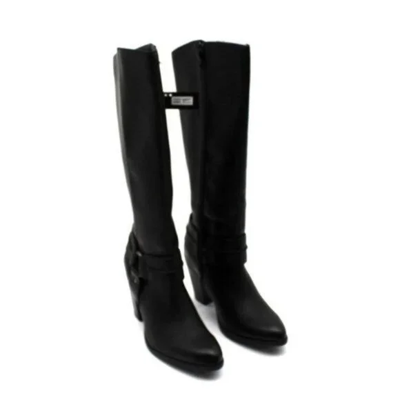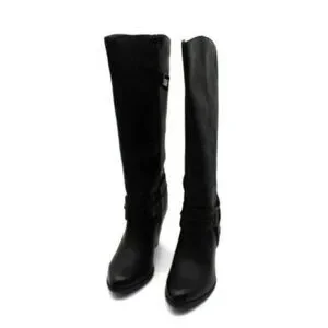 The Code West #YOLO is on trend and a timeless classic design. Made with soft manmade material and highlighted by a harness strap. Has a 3 fashion heel and inside zipper.