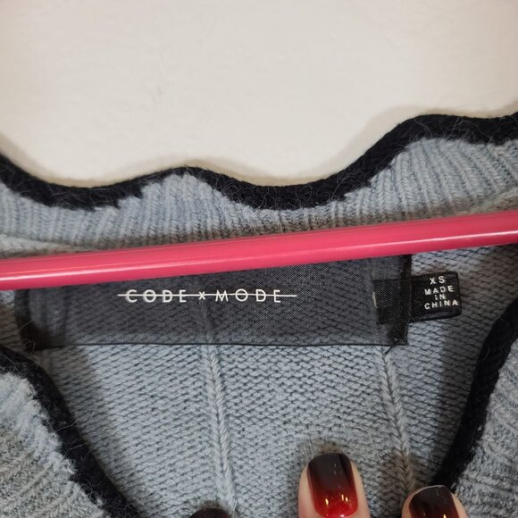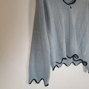 Code X Mode Angora Blend Scalloped Hem V-Neck Cropeed Sweater Light Blue XS