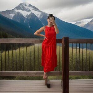 Code X Mode Cotton Blend Red Tailored Maxi Dress, Size Xsmall Xs