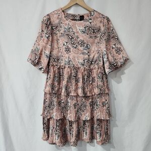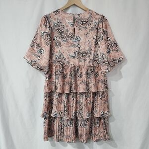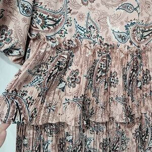 Code X Mode Women's Tiered Dress Size M Mauve Green Satin Floral Paisley Party
