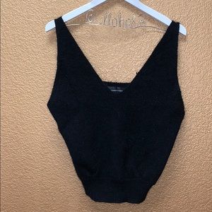 Crop top V-neck tank top preowned condition 70% nylon 20% angora rabbit 10% viscose with cinch waist. cute with boyfriend jeans or cut off shorts