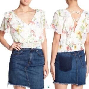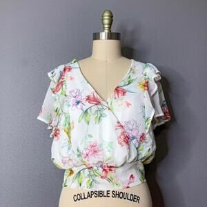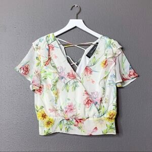 Code x Mode Cropped Floral Ruffle Surplice Top size Medium
