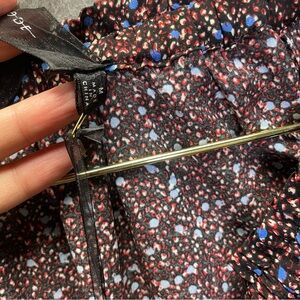 Code x Mode Drop Waist Button Front Ruffle Skirt Satin V Neck Dress