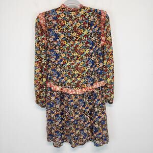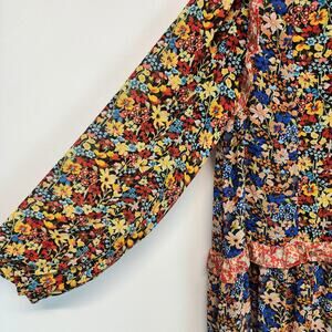 Code x Mode Floral Dress Size S Colorful Sheer Chiffon Ruffle V-Neck Peasant
