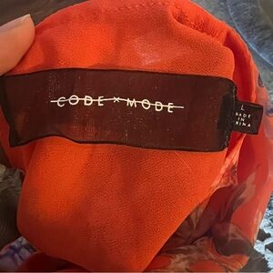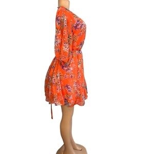 Code x Mode Orange and Blue Floral Print Short Sleeve Belted Mini Dress in size Large.