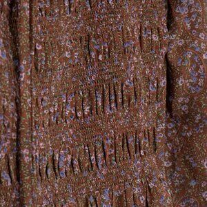 Code x Mode Peasant Dress Milk Maid Liberty Floral Hippie 70s Brown Autumn Maxi , size medium. NWT new with tags. The Code Mode brown peasant maxi dress is a cottagcore gown with smocked bodice dress , puff poet sleeves and micro floral design. The fabric is a brown tone and feels so 60s or 70s while still being modern and girly / feminine. This could even be perfect for a boho music festival or for Renaissance Fest attire.