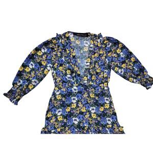 Code x Mode blue yellow casual ruffle tiered floral maxi dress size S