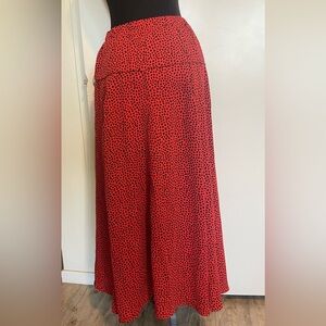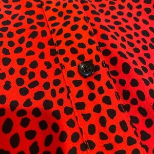 Red with black polka dots skirt size small. has black buttons down the front. In excellent condition.