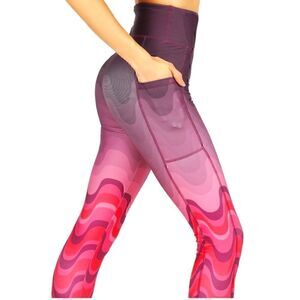 these are unique patterned, (wave ombre) tummy control with deep side mesh pockets for items such as keys and credit cards. say goodbye to constantly pulling up workout leggings. these come with an extra wide waistband to flatten and smooth your tummy and waist. made of premium materials and unique style and color combination these are sure to become your favorite workout leggings. ONLY TWO LEFT IN STOCK!!!! Both are si,e L 8-10. they do run a little small so these would be perfect for a medium and do fit large snugly.