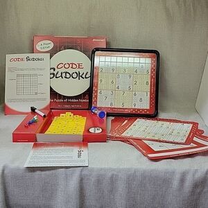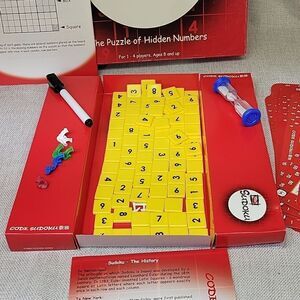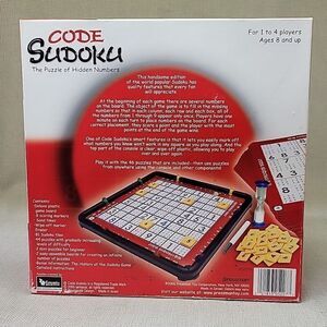 A great game by Pressman. 1- 4 player edition. Ages 8 and up. Code Sudoku..The puzzle of Hidden Numbers. It is missing 1 marker. But is complete otherwise.