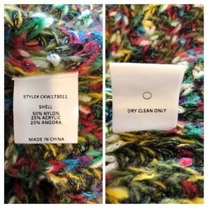 Billowy blouson sleeves balance the cropped length of a gorgeously soft sweater knit from multicolor space-dyed yarn with a touch of angora. This style fits true to size (XS=0-2).