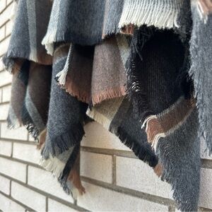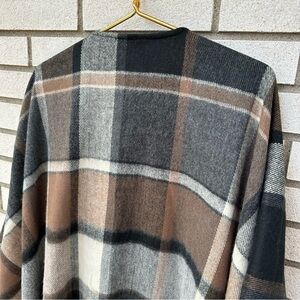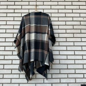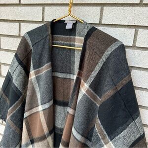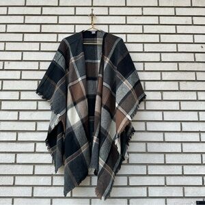 Codello Plaid Fringe Ruana Wrap Neutral Brown Black Gray Tan Cozy Fall Layer OS