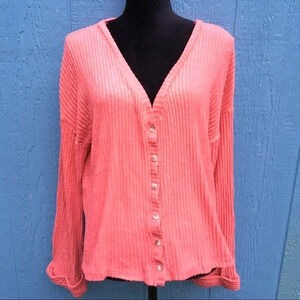 CodexMode Brushed Boyfriend Cardigan Sweater L Coral Pink Long Sleeve Nordstrom