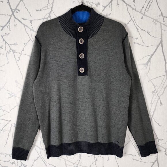 Codice Gray Navy 50% Merino Wool Blend Knit Mockneck Polo Sweater