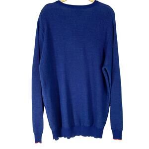 Codice Merino Wool Blend Sweater Men L Royal Blue V-neck Orange Trim Rib Cuffs