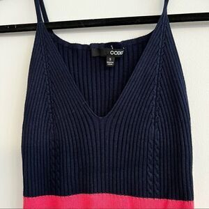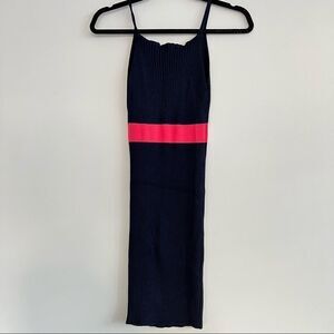 Codigo Navy and Pink Stripe Ribbed Knit V-neck Bodycon Midi Dress Size Small