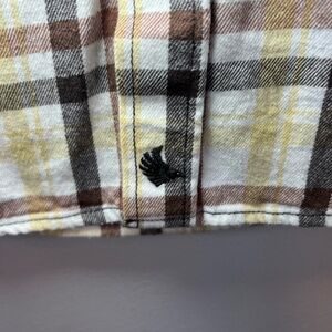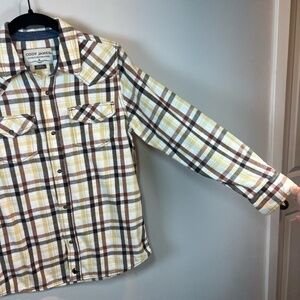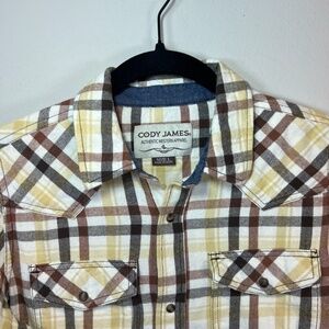 Cody James Boys Plaid Flannel Pearl Snap Shirt Beige Brown Western Pockets Large