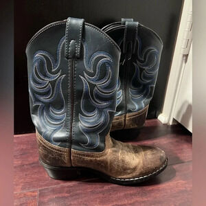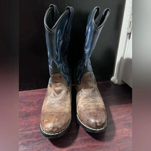 Cody James Brown/Blue Leather Round Toe Pull On Western Boots Boys Size 4D EUC.