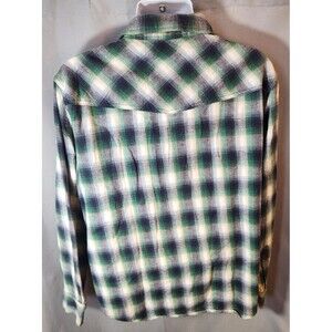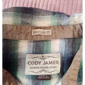 Cody James Flannel Shirt Men Large Blue Green Regular Fit Pearl Snap Western