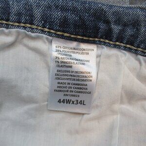 Approximate Measurements: Waist 44", Rise 13", Inseam 34", Total Length Waist to Hem 47"