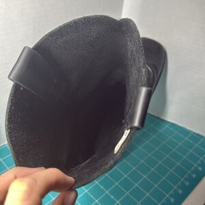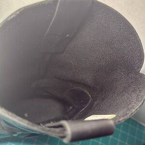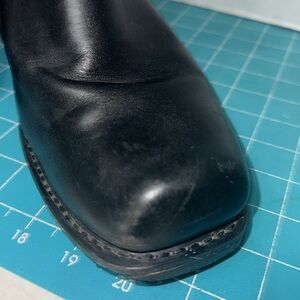 Step out in style with these sleek black leather boots. Perfect for any occasion, these boots offer both comfort and durability. Pull in style, more wear on the left boot sole than right. Still have lots of life in them. GUC