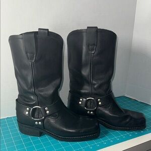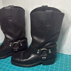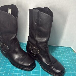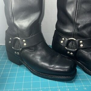 Cody James Moto Biker Riding Square Toe Harness Black Leather Boots Size 8.5