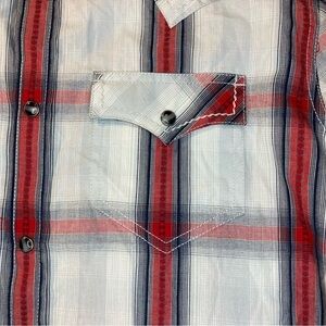 Cody James Rough Talk Plaid Long Sleeve Western Shirt Regular Fit Snap Button Closure Size Small. Please note there is a tiny marking on one of the sleeves, I have not tried to stain treat or remove it - see close up. 100% Cotton.