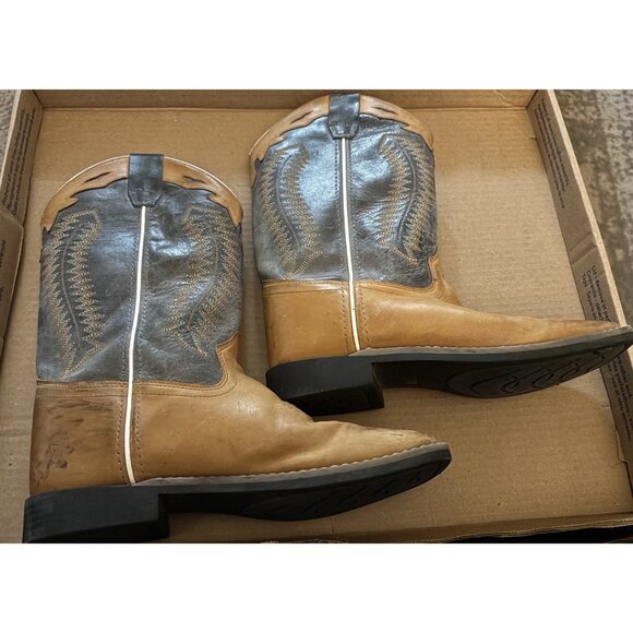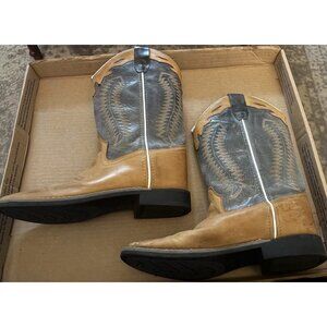 Cody James TAN/BLUE Square Toe Western Cowboy Boots BIG KID Size 6D