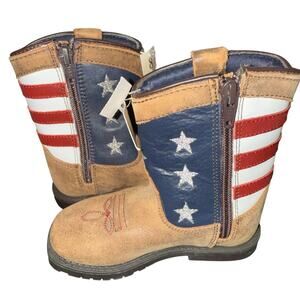 Cody James Toddler-Boys' USA American Flag Western Boot Broad Square Toe Brown 8 D NWTs