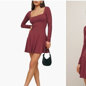 Coen Long Sleeve Drop Waist Minidress Reformation