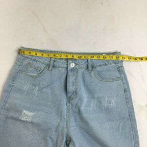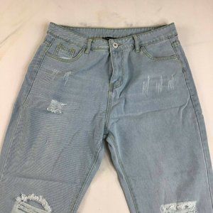 Coeur De Vague Women's Blue Highly Distressed Crop Tapered Jeans Size L