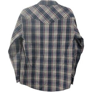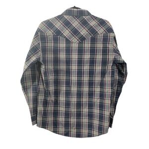 Elevate your wardrobe with this stylish Coevals Club Pearl Snap Western Shirt. Perfect for any occasion, this gray plaid shirt features a collared neckline, long sleeves, and snap closure. Made from a comfortable and durable polyester blend fabric, this shirt is machine washable and easy to care for.