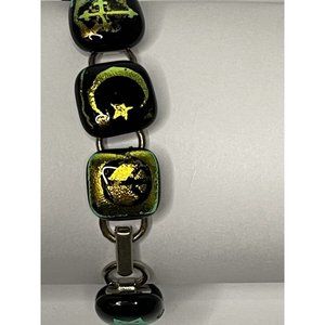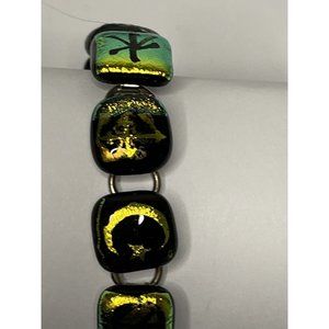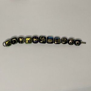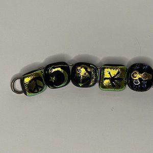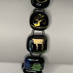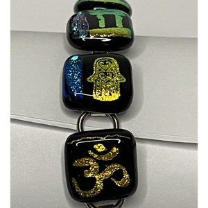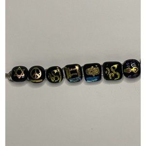 Coexist Peace Bracelet Religious Symbols Dichroic Glass Metallic Iridescent Foil