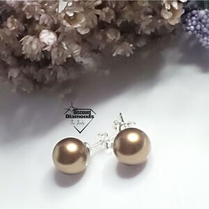 Coffee (Brown) 10mm South Sea Shell Pearl Stud Earrings on 925 Sterling …