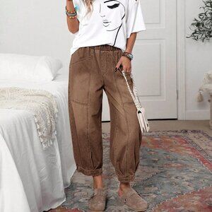 Coffee Brown Casual Women's Elastic Waist Loose Tapered Jeans
