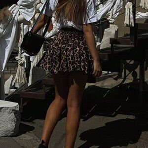Coffee Brown Casual Women's Leopard Print Mini Skirt