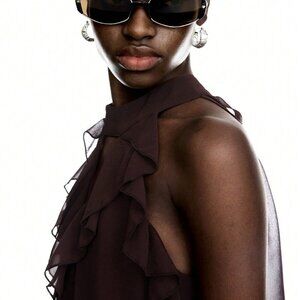 Coffee Brown Casual Women's Ruffle Chiffon Halter Top With Tie – Boho Style
