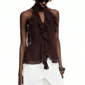 Coffee Brown Casual Women's Ruffle Chiffon Halter Top With Tie – Boho Style