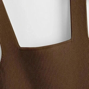 Coffee Brown Casual Women's Solid Ribbed Knit Top