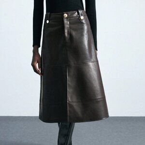 Elevate your wardrobe with this elegant midi skirt, featuring a classic design. The coffee brown hue adds a touch of sophistication, while the regular fit and midi length create a flattering silhouette. With its plain pattern and A-line straight style, this skirt is perfect for dressing up or down.