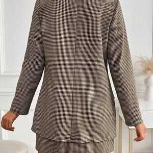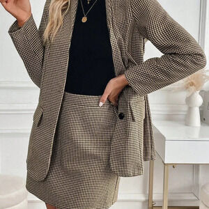 Coffee Brown Elegant Women's Vintage French V-Neck Tailored Suit Set