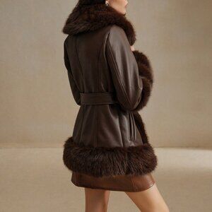 Coffee Brown Elegant Women's faux leather & faux fur Jacket