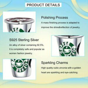 This sterling silver coffee cup charm is a delightful addition to any jewelry collection. Its polished finish and intricate design catch the light beautifully, making it a striking accessory for bracelets or necklaces. The charm's compatibility with popular bracelet brands enhances its versatility, adding a touch of whimsy and sophistication.