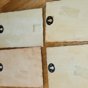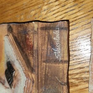 These are used and i switch up my kitchen to another theme. Each plaque is approximately 4 by 6 inches. Artist name is S Vassileva.