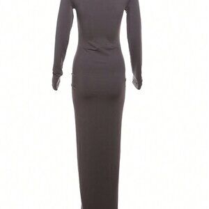 Coffee Elegant Women's Ruched Slim Waist Dress