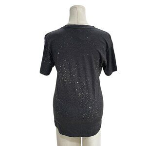 Color: Black with bleach-splatter wash, multicolor graphic print